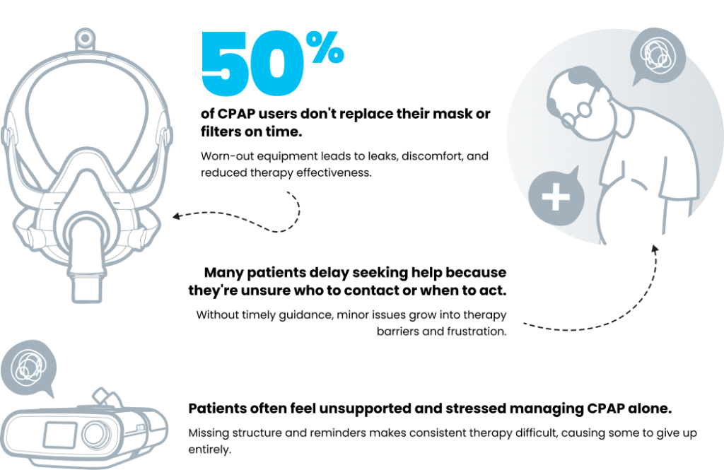 Worn-out equipment leads to leaks, discomfort, and reduced therapy effectiveness.